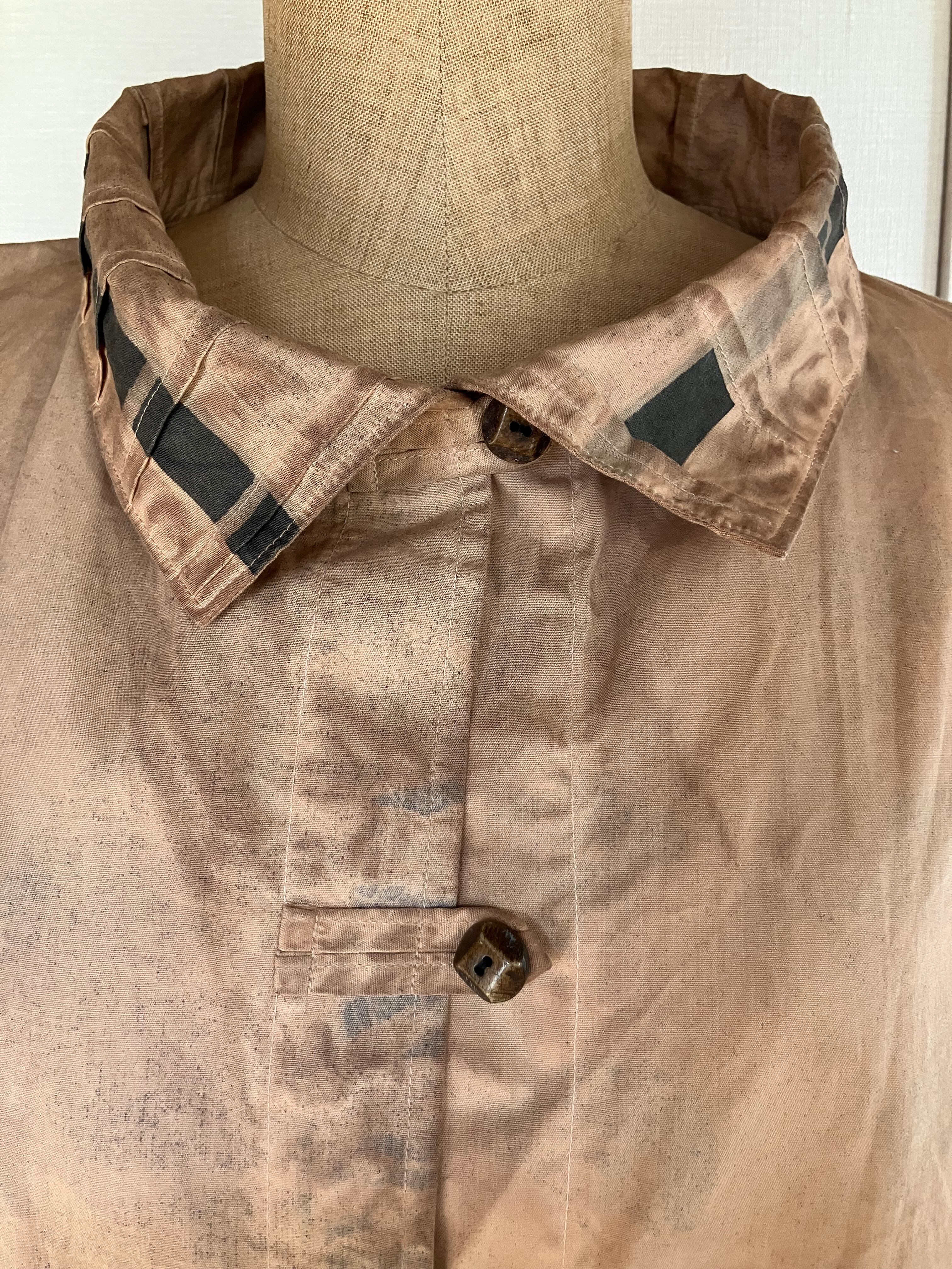 着丈 55センチ 身幅 70センチ 袖丈30センチ(背中心より袖口まで65センチ) 水牛ボタン 素材 綿100%