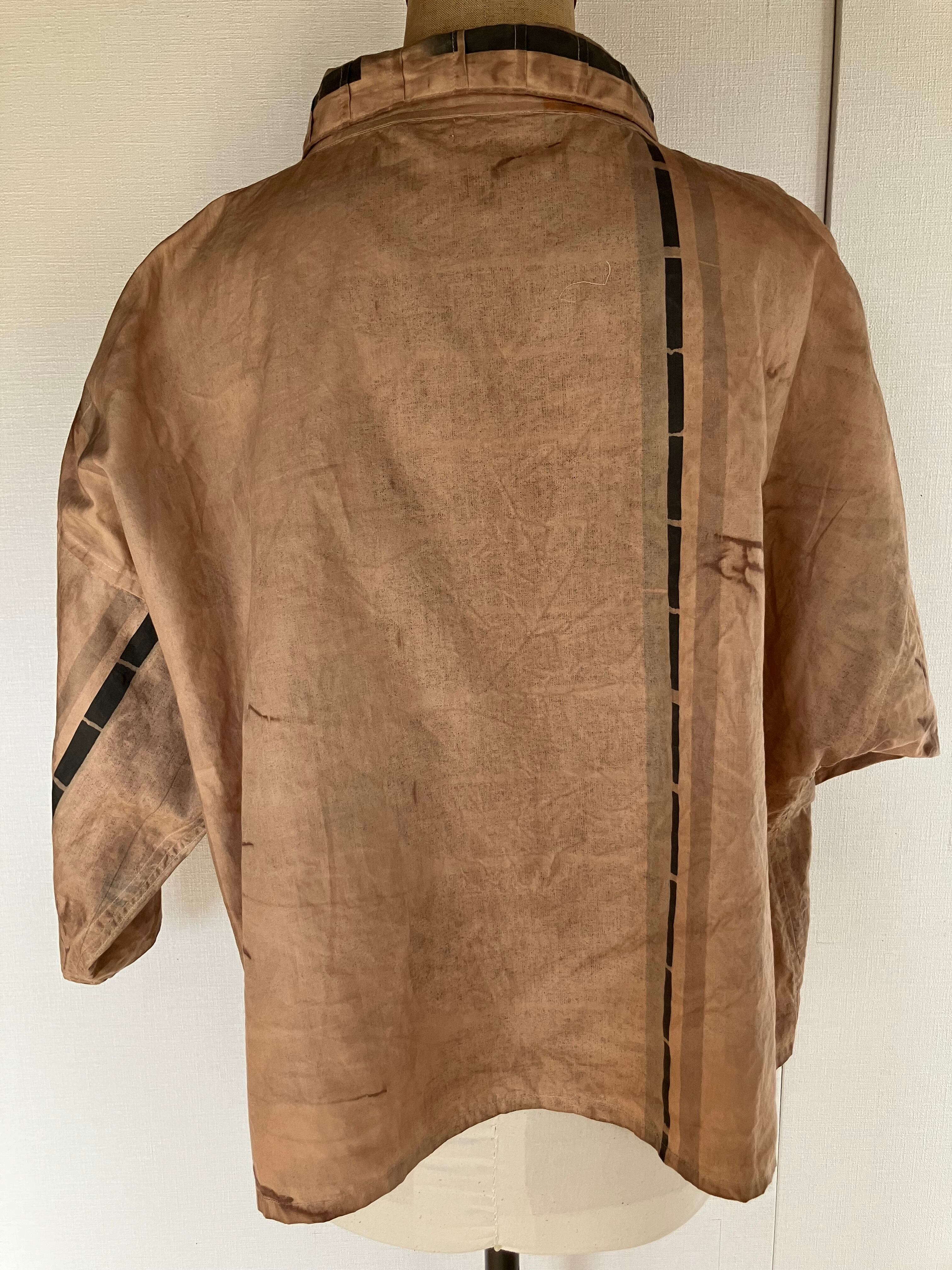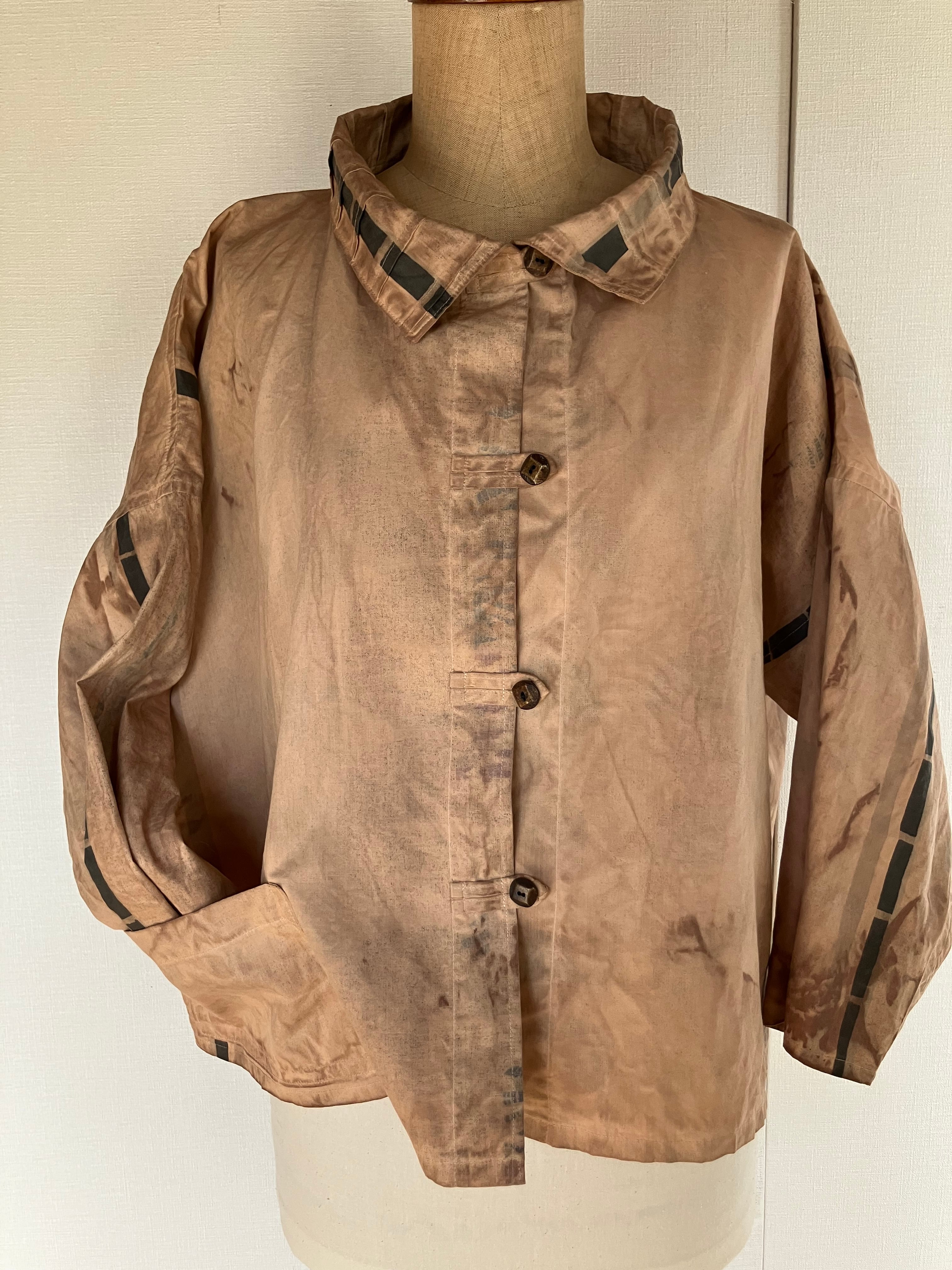 衿付き柿渋染め衿ピンタックジャケット | 廣山三千代